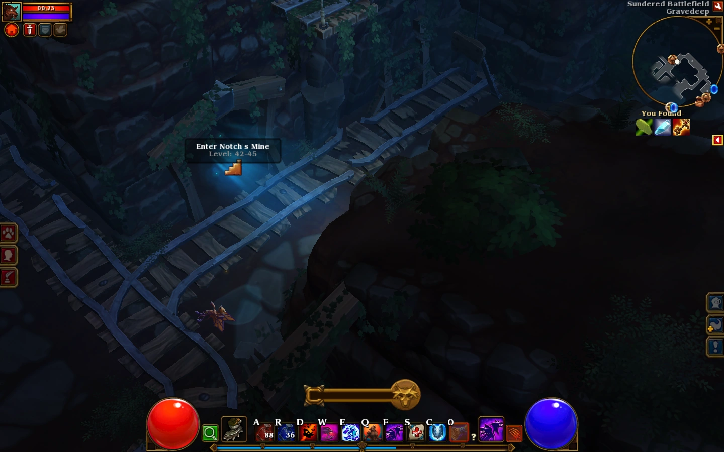 Notch's Mine is a dungeon found in Sundered Battlefield in Act III of Torchlight II. It is a rare dungeon, and is not always generated. It is an extremely small dungeon with a fixed layout.