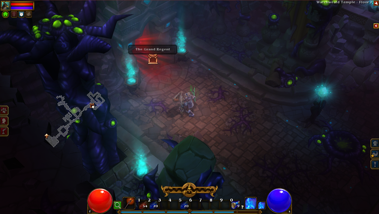 The Watchweald Temple is the final dungeon in Act I of Torchlight II. It has three floors, which are infested with Netherim and Infected Estherians, many champions. The third floor is the domain of Act I's final boss, the Grand Regent.