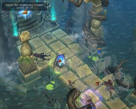 Wellspring Temple is one of the dungeons found in Torchlight II. Wellspring Temple has 3 floors and is found in the Wellspring Approach in Temple Steppes. General Grell is fought on the last level, in the Water Guardian Palace.